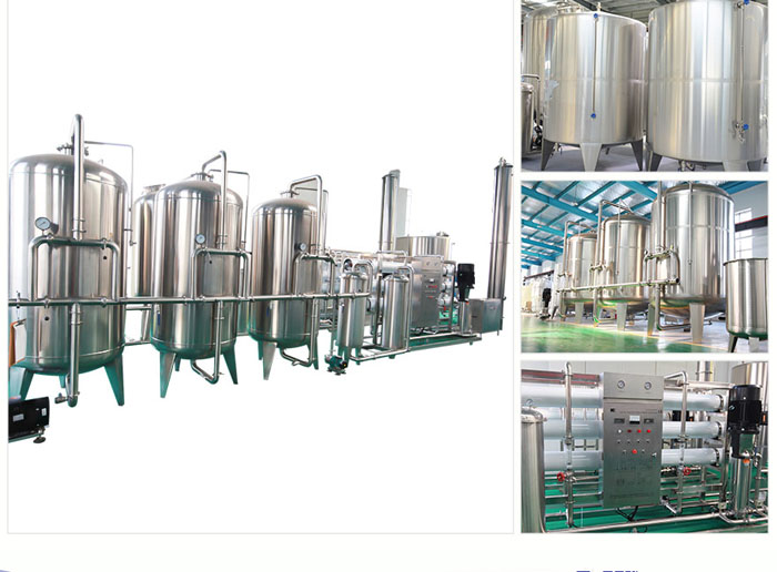 The main equipment are silica sand filter, active carbon filter, sodium ion exchanger,RO( reverse osmosis), UV sterilizer, precision filter, ozone generator, water tank etc. The treatment capacity is 0.5-50 ton/hour. It can effectively get rid of muddy organic matter, iron, manganese and oxide, filter suspended substance, colloid, remained oxygen of microorganism and some of heavy metal ion in the water, reduce the hardness of the water to make all specifications of the water quality fully meet the state fresh water standard of fresh drink water.